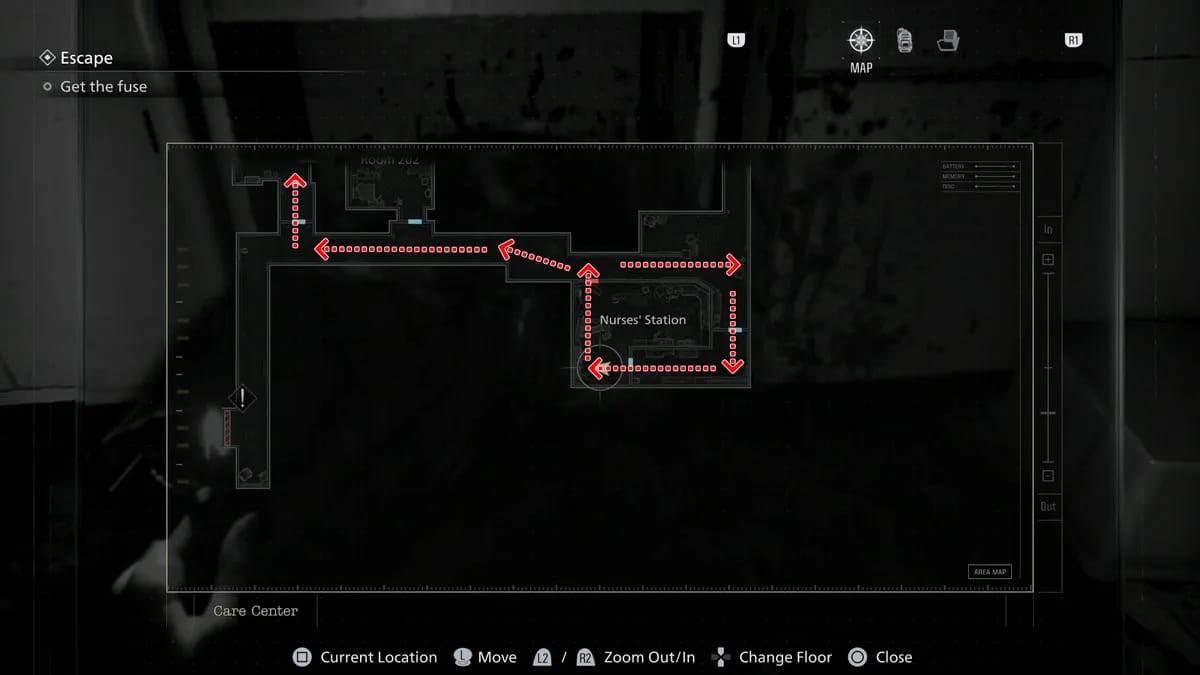 Вийшовши з кімнати 201, одразу повертайте праворуч. Запобіжник потрібно вставити в панель біля ґратчастих воріт. Надзвичайно важливо зробити це швидко. Якщо забаритеся — доведеться знову намотувати кола навколо поста медсестри, ризикуючи потрапити в лапи чудовиська.
