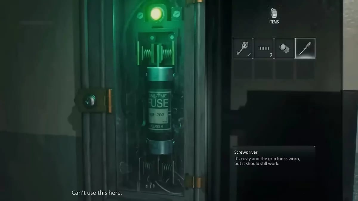Тепер дійте швидко. Якщо монстр з’явиться знову — ховайтеся у безпечній зоні (кімната 203). Маючи викрутку, йдіть до палати №201 (де ви бачили щиток у коморі). За допомогою викрутки відкрутіть кріплення та заберіть запобіжник.